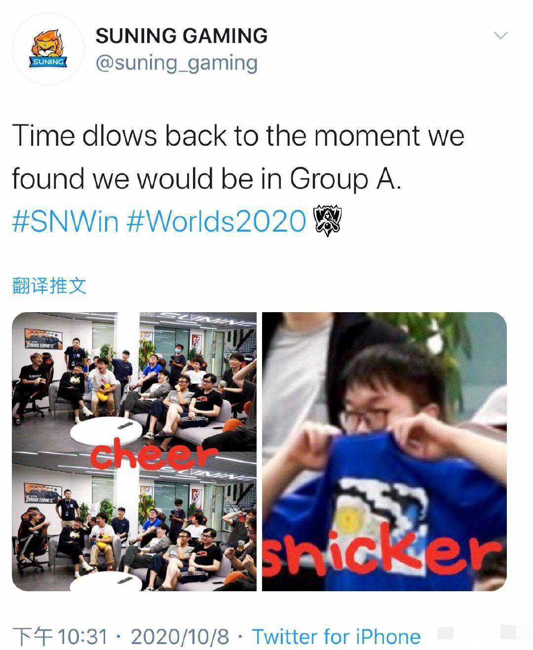 SN赛后发文扎心RNG:在双杀G2拿到小组赛第一晋级出线后,SN官博也是发出此前抽签抽到A组时的后台队员反应,配文说到:“时间回流到我们发现自己进入A组的时刻,终于可以发出来了?”照片中SN当时抽到A组的时候后台队员都忍不住笑开花,如今确实小组第一出线了,确实是好签;而当时SN没有发出来,估计也是有了此前S8中RNG的前车之鉴,如今发出来让RNG扎心了,毕竟当时RNG队员抽到G2的时候也是笑开花,但但是却惨遭淘汰,十分遗憾,让人心疼!
