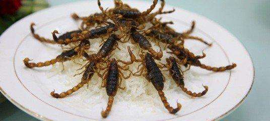 做法:将蝎子洗净,下入开水锅中,加入百里香、胡椒粒、精盐、姜、葱、尖椒,盖好煮10分。蝎子250克、盐水、花生油。把蝎子放入锅内用文火煮3—4小时,煮至蝎身僵直,捞出沥水备用。油锅烧至四成热,放人蝎子炸至表皮蓬松呈金黄色,捞出装盘即成。可以撒些椒盐,又是另一种味道了。这个我是吃过的开始是有点不敢,吃了一个感觉还是不错的。