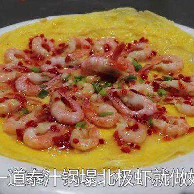 11、盖上锅盖,约30秒后即可出锅装盘。浇上泰塌加拿大北极虾就做好了。泰汁酸辣,虾肉鲜甜,鸡蛋软嫩。