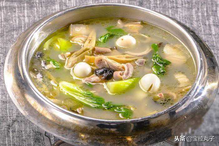 温馨提示:没有高汤可以用浓汤宝,没有咸水鸭可以用鸡肉代替,里面的菜也可随意搭配,但是都要焯水。