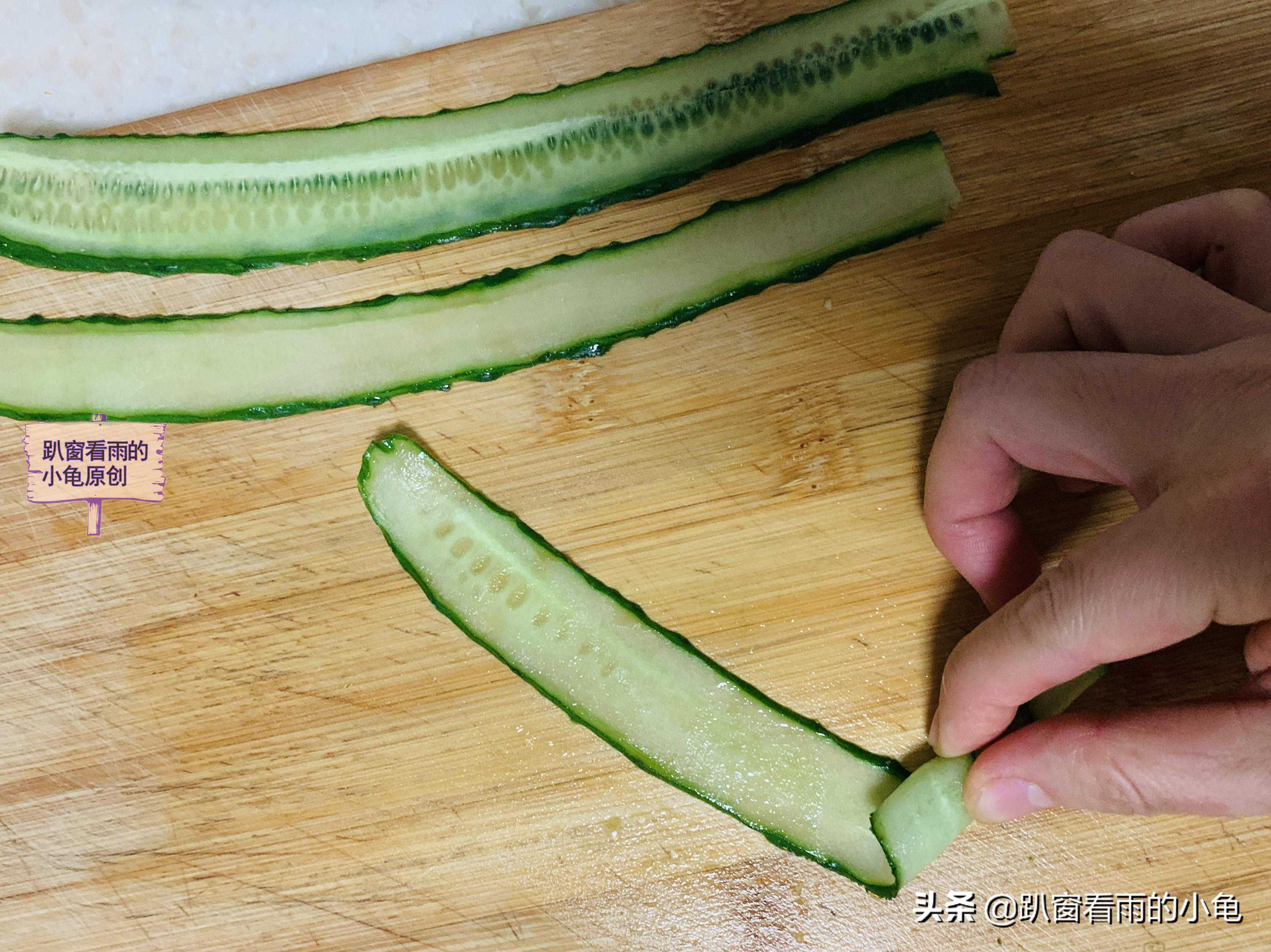 同样是黄瓜,比起切丝和拍段,相信卷起来的黄瓜会让你的用心在家人眼前一亮,每天的饭菜虽然内容没变,但从形式上我们可以想方设法让它不一样,依旧吃出健康、吃出好心情,喜欢做黄瓜凉菜的你不妨一试!