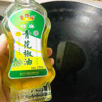 3、热油,油适量,加一点花椒油一起热,大火热到冒烟,别关火,再热两分钟左右,起锅倒调料里面