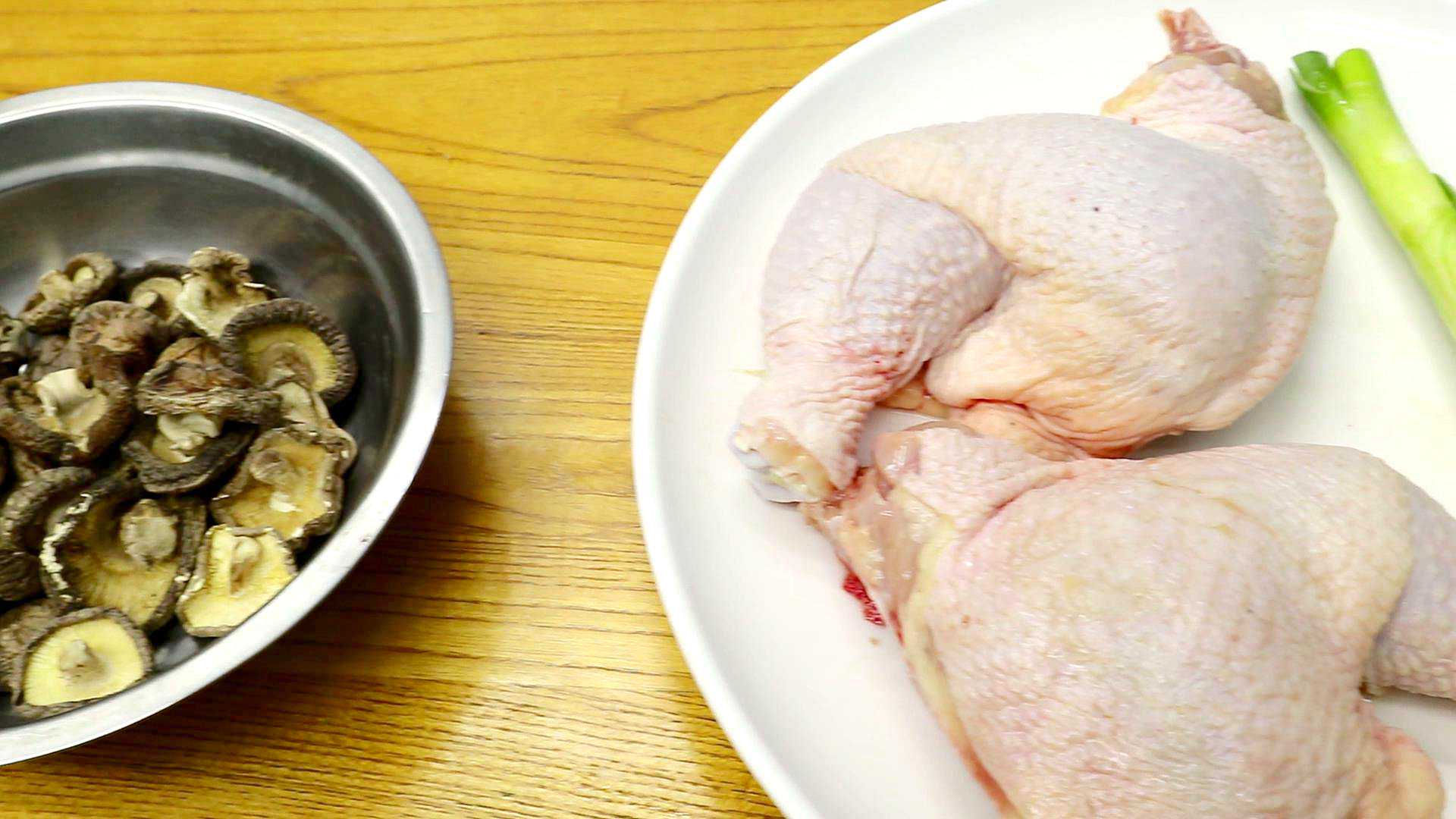 准备适量的干香菇,用温水泡上。准备两个鸡边腿,剁成均匀小块。剁好以后,用清水反复淘洗几遍。把血水洗干净,这样能够省去焯水的步骤,保留鸡肉原有的鲜香。