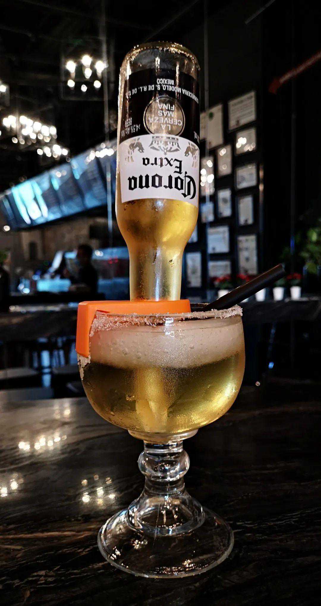 小吃除了经典的玉米片之外,值得一试的还有薯角鸡米花,现点现炸,非常罪恶但是非常美味。法基塔也有包揽经典口味的三味法基塔,牛肉、鸡肉和鲜虾一盘搞定,是货真价实的“大饼卷一切”。弗萨的酒水饮品也颇为丰富,各种果汁、软饮、啤酒和鸡尾酒都有供应。闲暇时候的小酌当然首推各种口味的玛格丽特,加了整瓶科罗娜和霜顶的啤酒玛格丽特尤其适合夏天解暑,冰爽柔和,非常容易入口,不过毕竟是以墨西哥国酒tequila为底,这一杯又照例分量很大,不胜酒力的同学还是谨慎挑战。