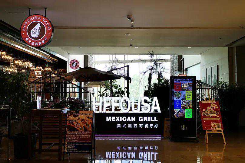 HFFOUSATACO弗萨塔可美式墨西哥餐厅(以下简称“弗萨”)藏在颐堤港二楼的一角,GAP的旁边。因为靠近玻璃幕墙,白天可以借到天光又不会被太阳直晒,小坐一下会十分舒适。绿植、陶罐和小彩砖的搭配十分“墨西哥”。