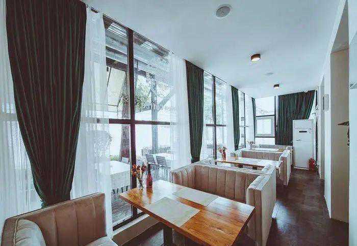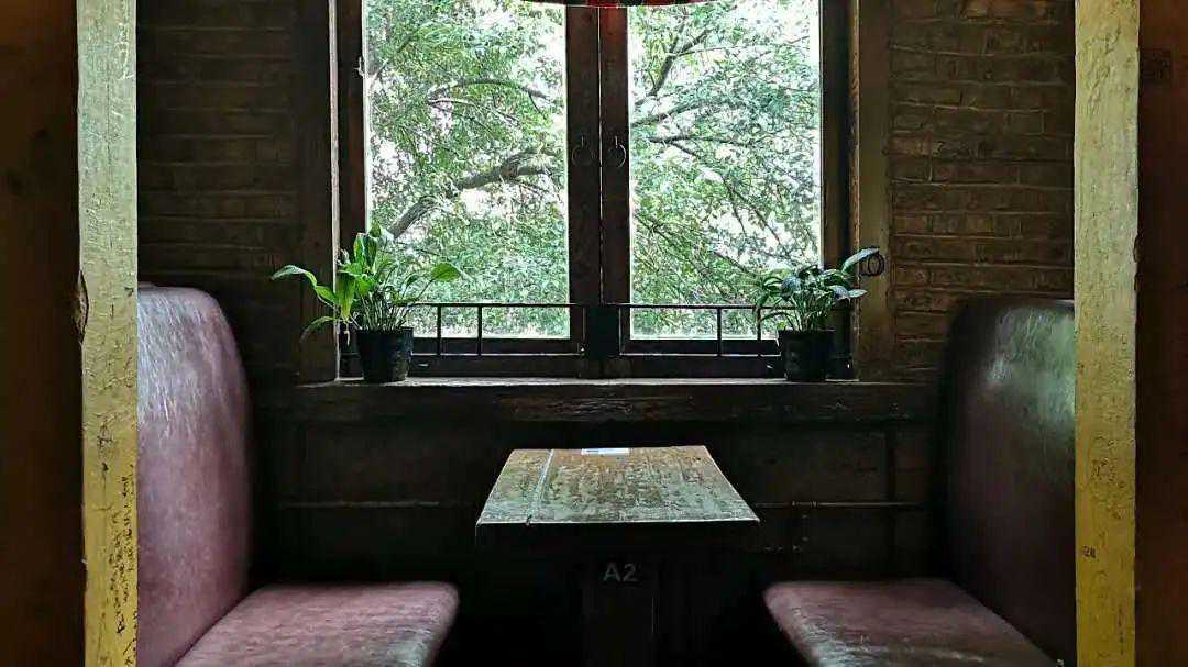 车内保留了火车车厢的所有主要元素,当然比绿皮火车要舒适漂亮许多。两侧临窗的四人餐桌,每张甚至还煞有介事地标了四个座位编号,看起来更像上个世纪欧洲豪华列车的餐车。餐厅有一个可以容纳8-10人的包间,平心而论里面冷气是更足一些,可是坐在散客区显然要有趣得多。