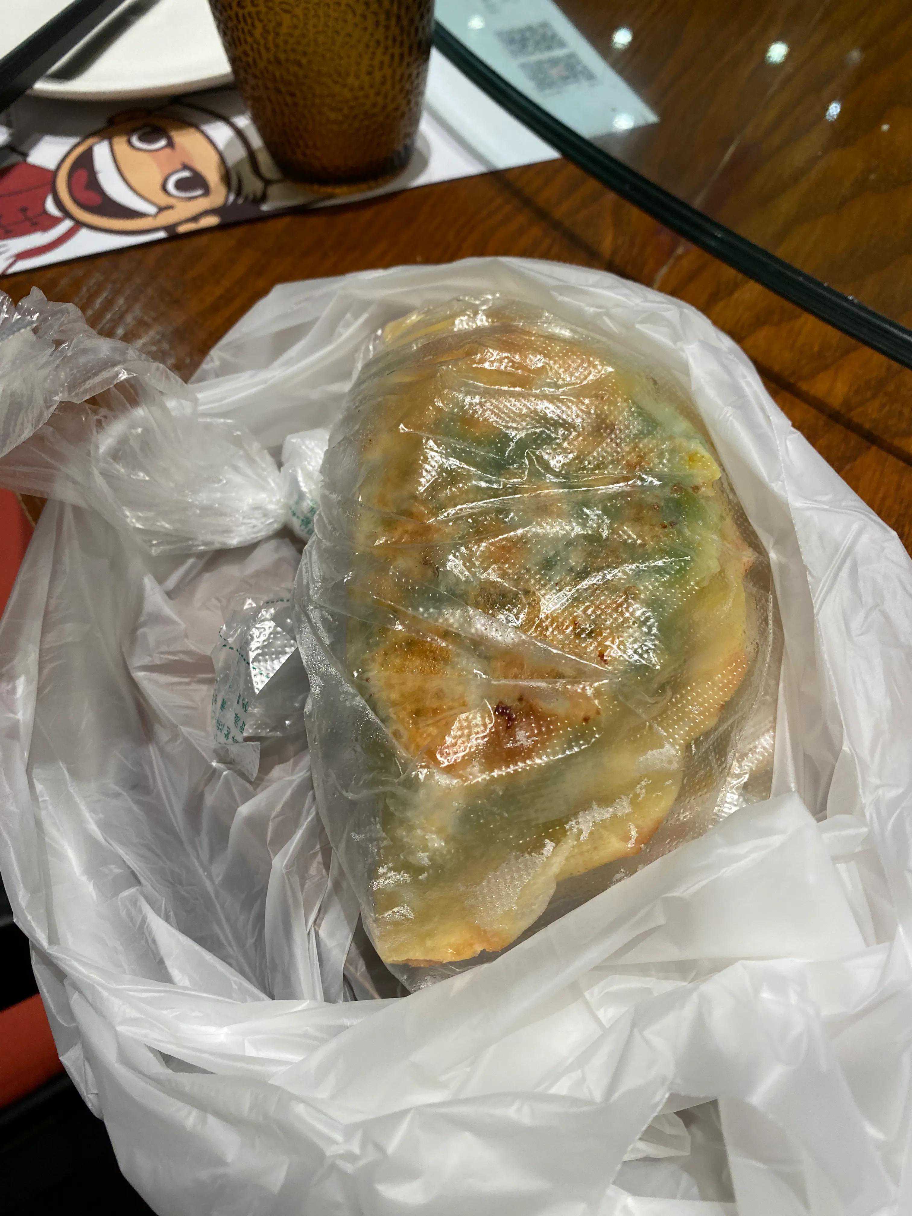 这香喷喷的韭菜盒子打包回到宾馆的房间,今天晚上整个房间都会洋溢着韭菜盒子的味道,估计明天早晨打扫房间的服务员一进门就会闻到了这韭菜盒子,就不知道她是喜欢呢还是厌恶呢?