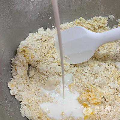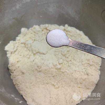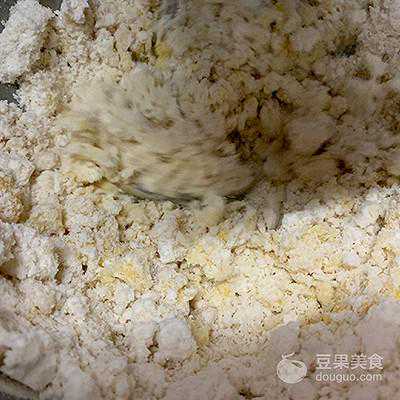 1、首先将面粉过筛,加入油。(由于工作关系要用到机子,其实和面过程用手更方便)