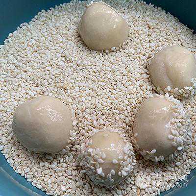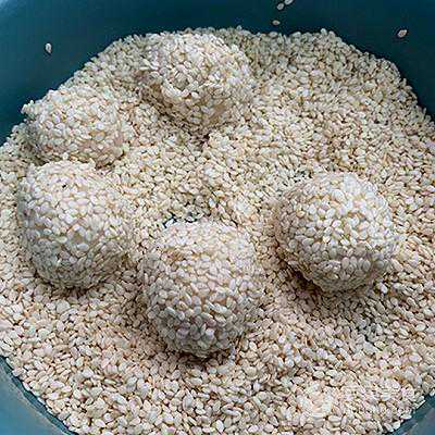 24、然后搓搓搓搓搓,让白芝麻裹得更牢固,炸的时候就不会掉那么多。