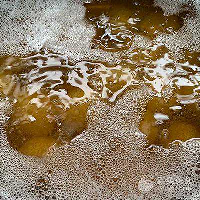 25、锅里倒油,加热到插入筷子,筷子边有很多泡泡出来。