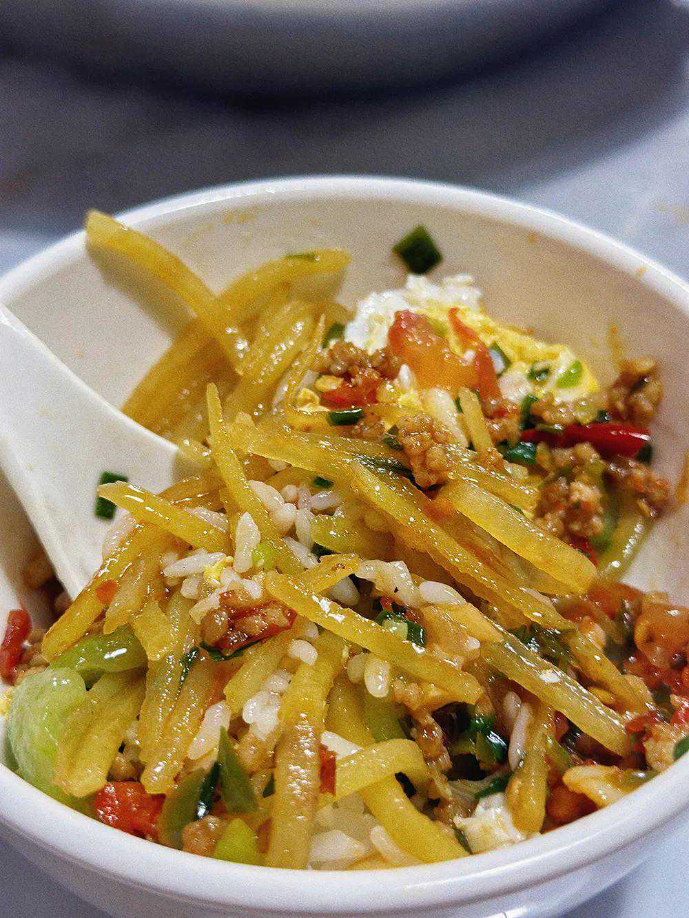 糟辣土豆丝更是一大筷子一大筷子地往饭碗里夹!这个时候桌上没有朋友!人人都是土豆丝小偷!!