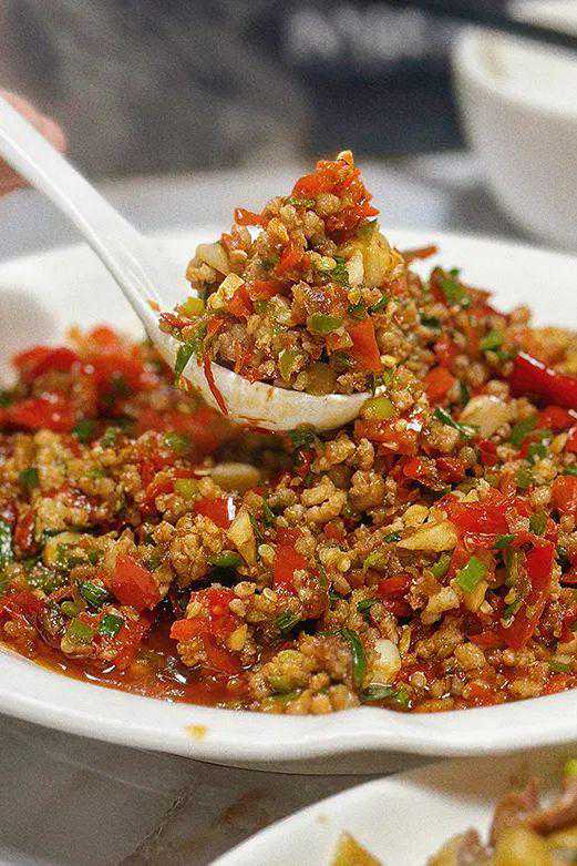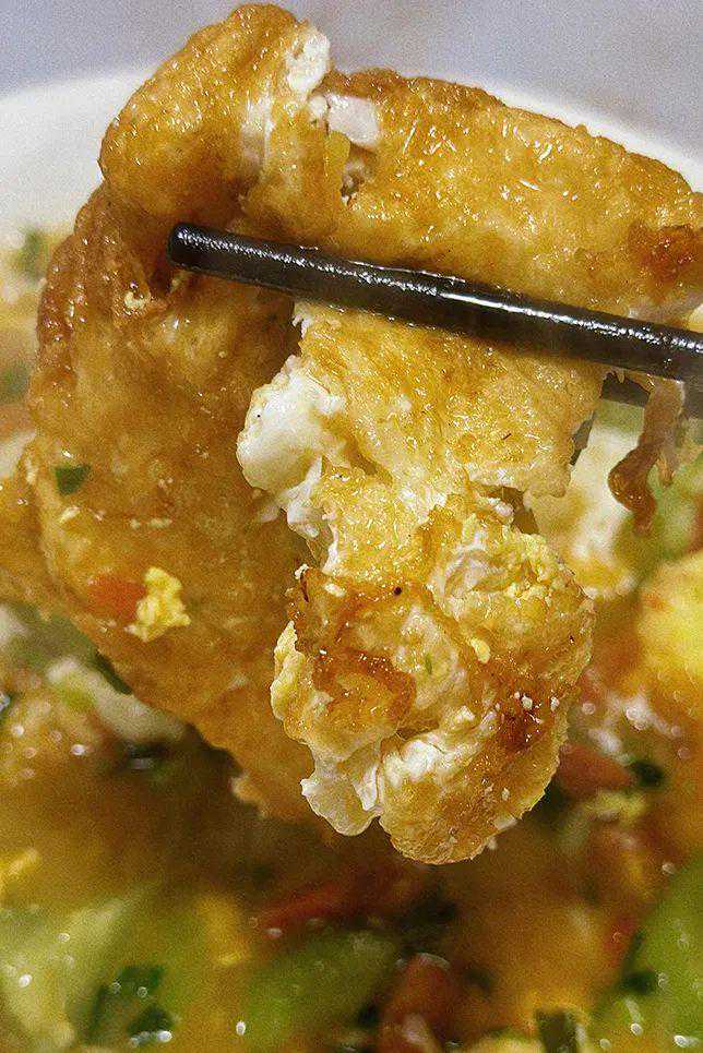 米粒油润松散,炒得很有锅气。既有糟辣椒的酸、辣、香,盐味又够味儿且不齁。令人不得不在炒菜和白米饭配合的间隙,插入式地吃上一碗。