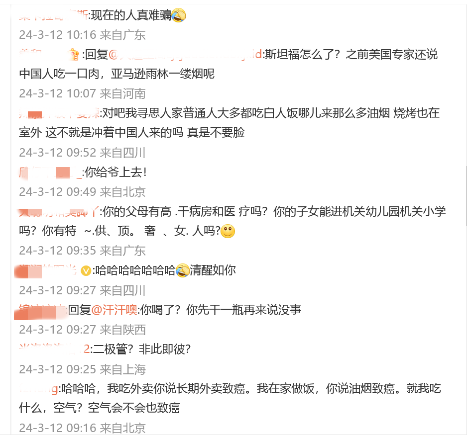 网友:“高中化学没学过吗?柴火灶和原煤经常燃烧不充分,会导致碳、氮、硫以及其他致癌物巨量增加,近十年老说做饭的人容易得肺癌,这是基本常识”
