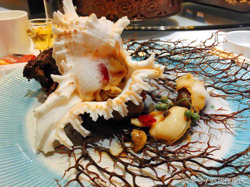 蓝色的盘子给人一种大海的遐想,白色的泡沫是浪花拍打沙滩的产物,红色的酱汁又有一点点海上日出的意境。为了这道“绝代双骄南非大海螺配青柠泡沫”,大厨“鑫哥”在珠海的海边坐了一个上午,灵感由此而发。