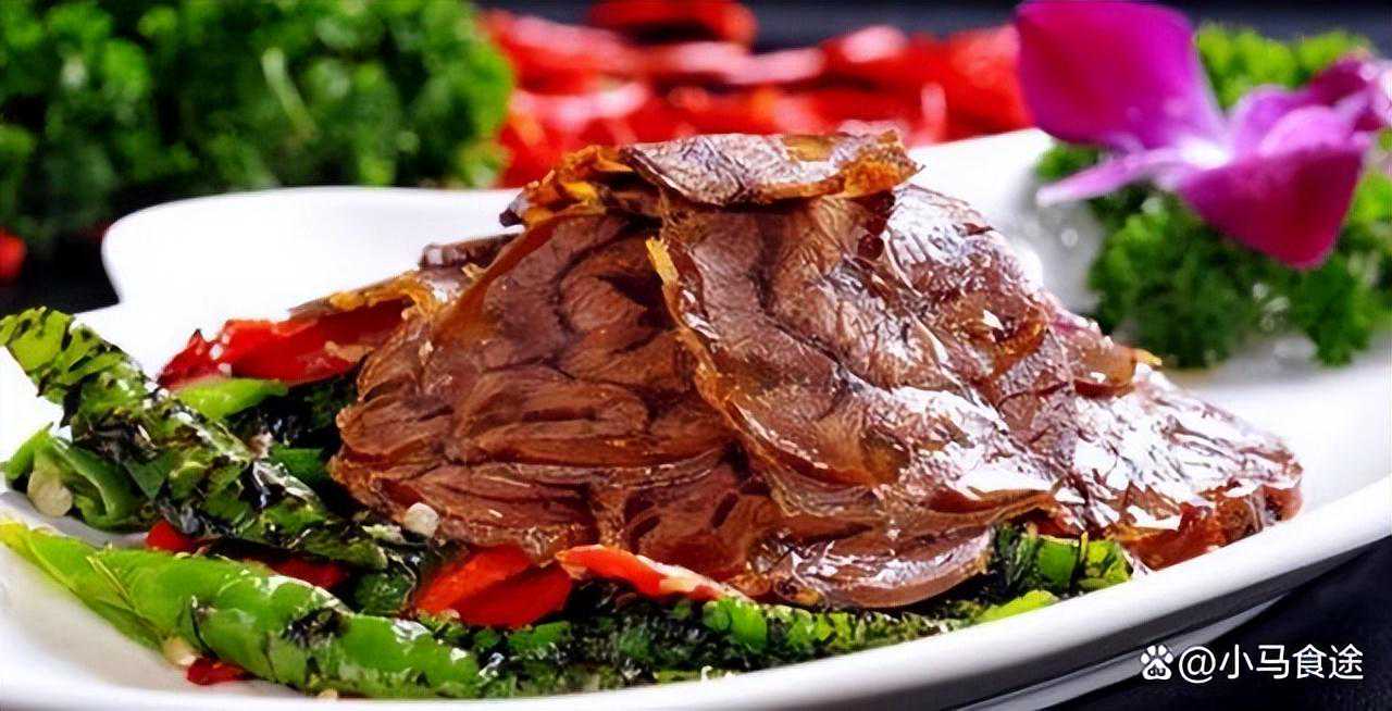 烧椒拌肉菜,就是四川烧椒吃法的重要体现,比较有名的川菜譬如:烧椒黄喉,烧椒牛舌,烧椒白肉、烧椒牛肉等,下面这道菜选用的是白卤过的带筋牛肉,再加上川味烧椒料,绝对称得上烧椒味型的代表菜之一。