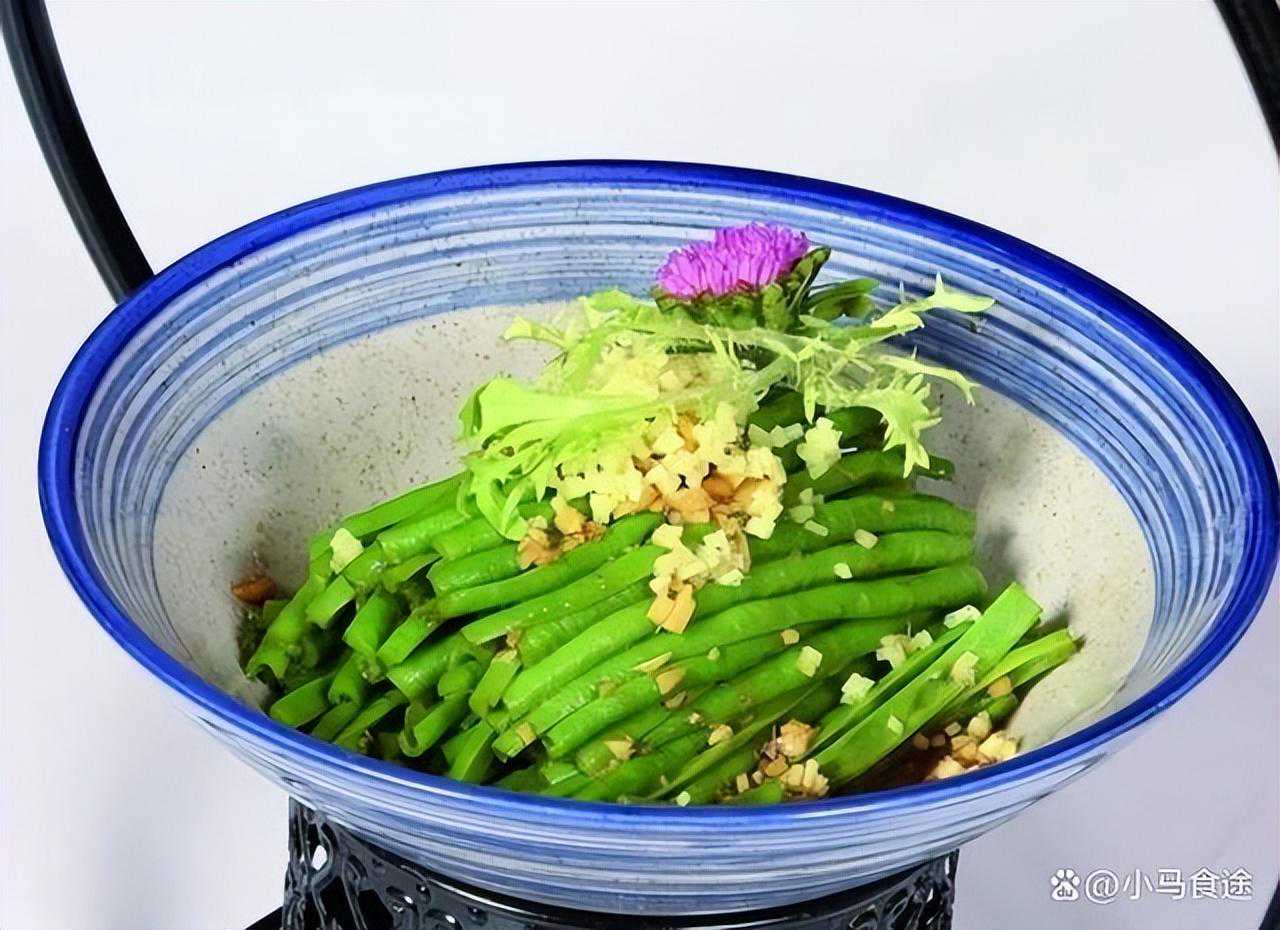 龙豆的别称是有很多,通常被我们称为四棱豆、四角豆、翼豆、皇帝豆、香龙豆等等。它的原产地不属于我国,主要在非洲,东南亚等地区,在我国都是分布在海南、西双版纳等亚热带热带地区,口感和形状与四季豆不同,这款菜选用龙豆,颇为新奇,作为餐厅凉菜很稀有,很有特色,也很有亮点。