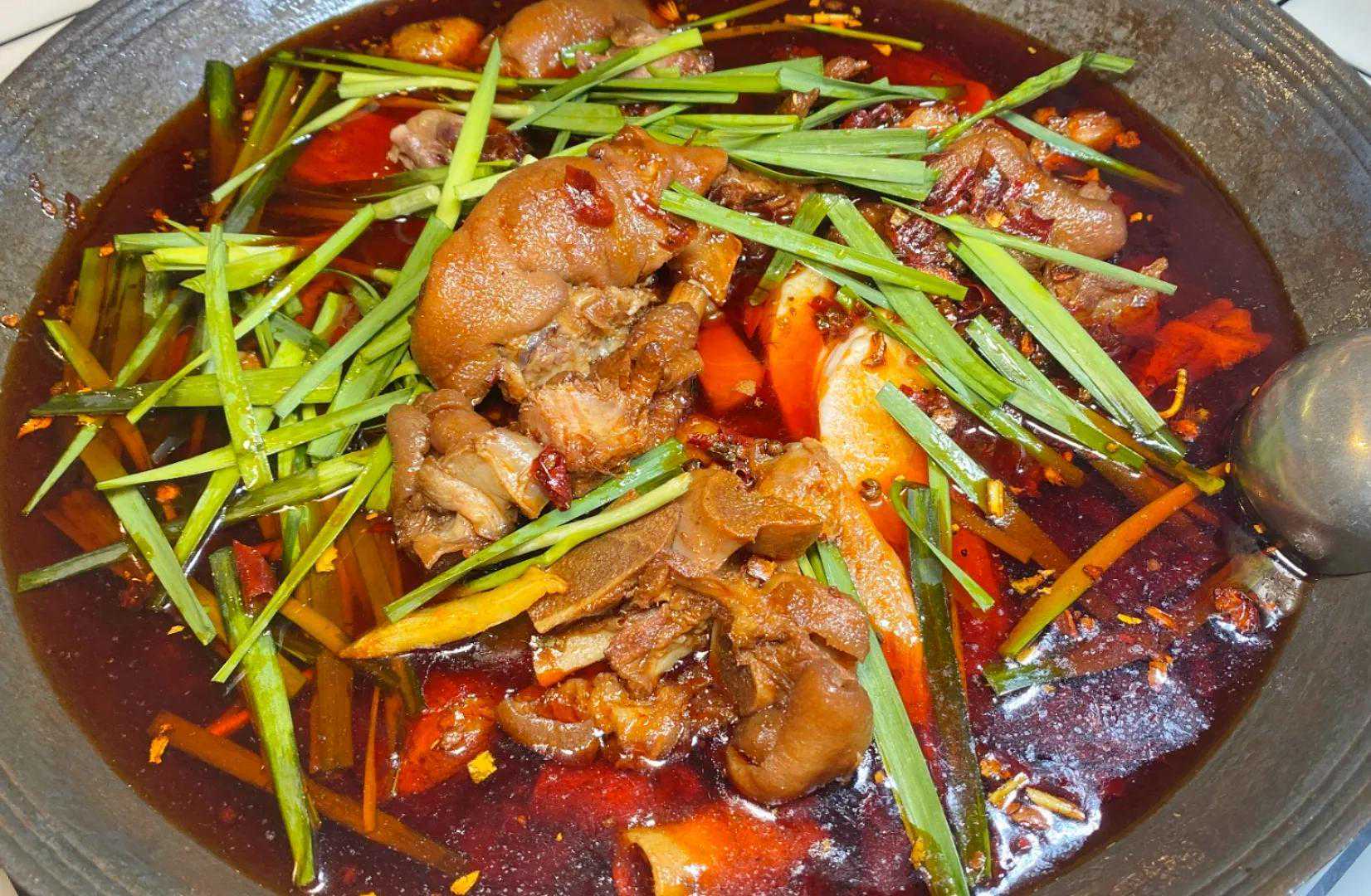 这时的蹄花着虎皮新衣却不失酥香口感,糯而不烂,紧实弹牙,随着各种豪华的配菜一同烹煮在红油汤锅中送到食客们面前,让其开启享受一刻。