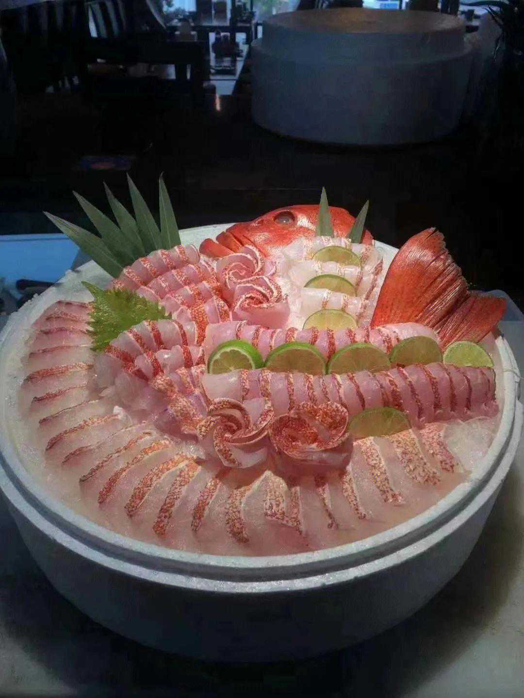 首先是东星斑刺身。东星斑鱼鲜嫩多汁,适合生食。将新鲜的东星斑鱼处理干净,切成适宜大小的薄片,码在盘子中。另取芥末、姜末、酱油、醋、香油等调料拌匀,淋在鱼片上即可。这款东星斑刺身既有石斑鱼的鲜味,又有调料的迷人香气,口感清爽,是很多美食爱好者的最爱。
