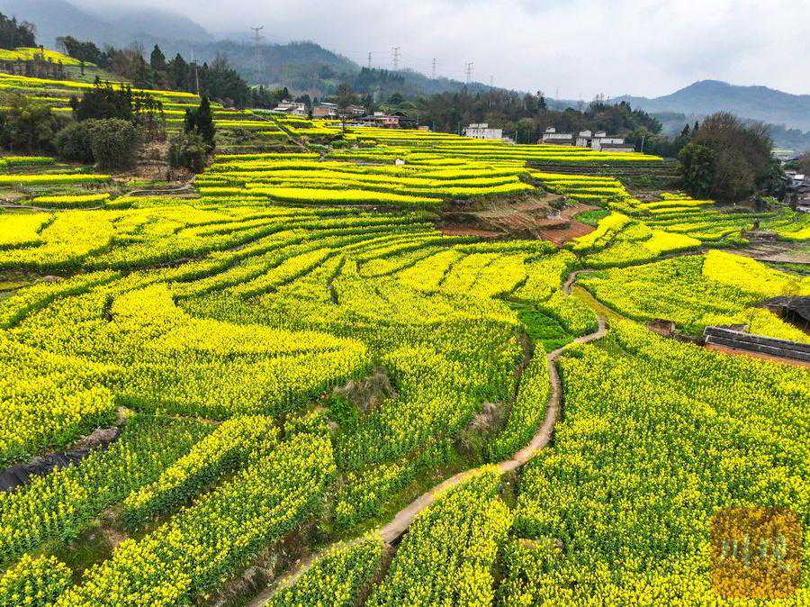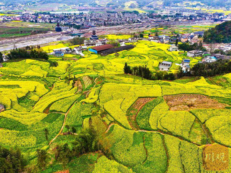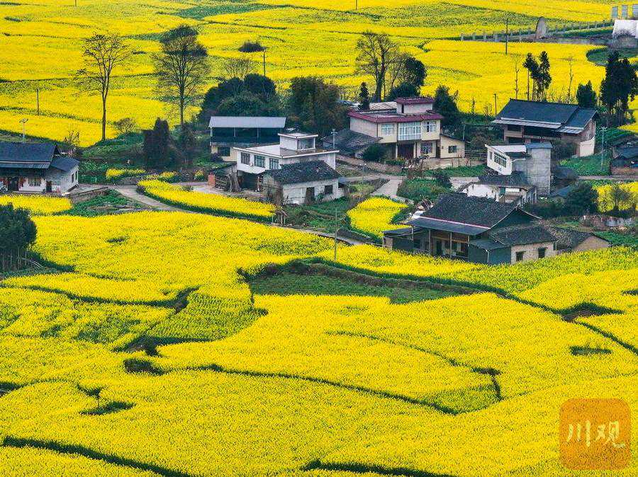 或纷翠交错、或簇簇累累、或色彩斑斓……3月6日,阳春三月的雅安芦山县,乡间连片的油菜花竞相绽放,山岗、房前、屋后……金灿灿的花海随着山势连绵起伏,如层层金带萦绕山间,构成了一幅幅春意盎然的唯美画卷。