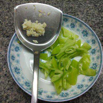 2、青椒洗净切成滚刀小块,蒜瓣切碎末。