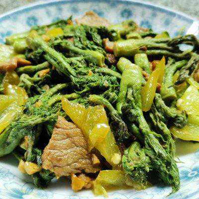 这道东北野山珍~肉炒刺老芽简单快手,超下饭