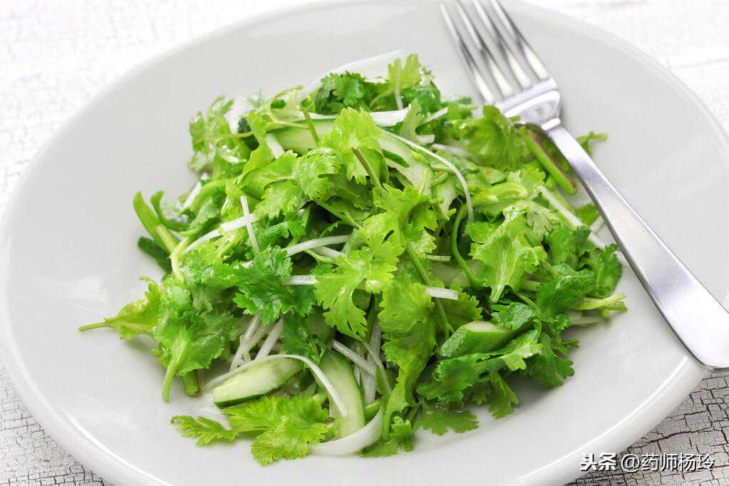 香菜也是有一定的辛温升散之力,香菜的特殊香味能够刺激汗腺分泌,促使机体发汗透疹。风寒感冒期间,在粥汤中加一些香菜,有助于祛除风寒;食欲不佳时,也可以在菜中加一些香菜。