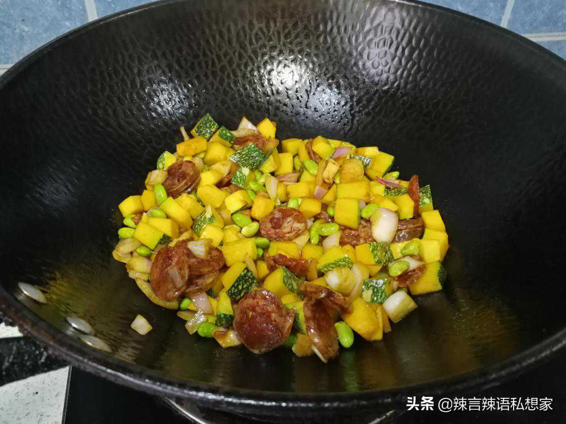 还在把南瓜炒来吃蒸来吃吗,用南瓜做腊肠煲仔饭吧,好香好好吃