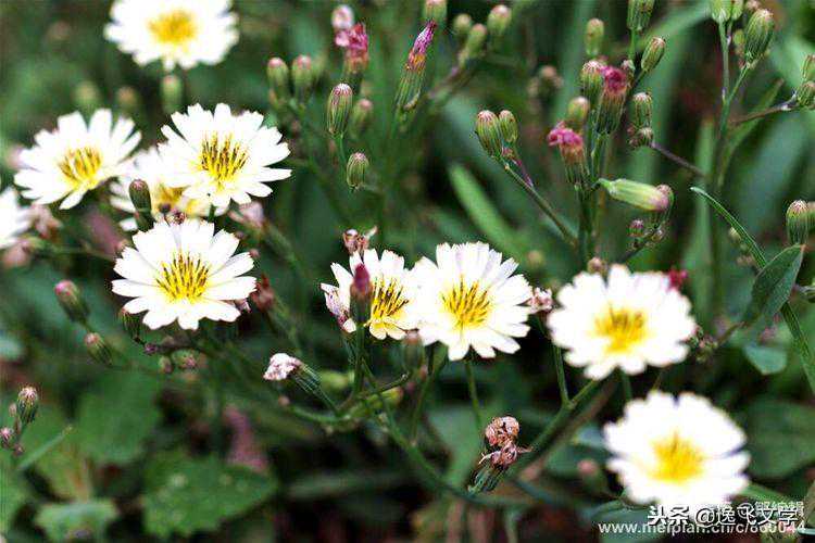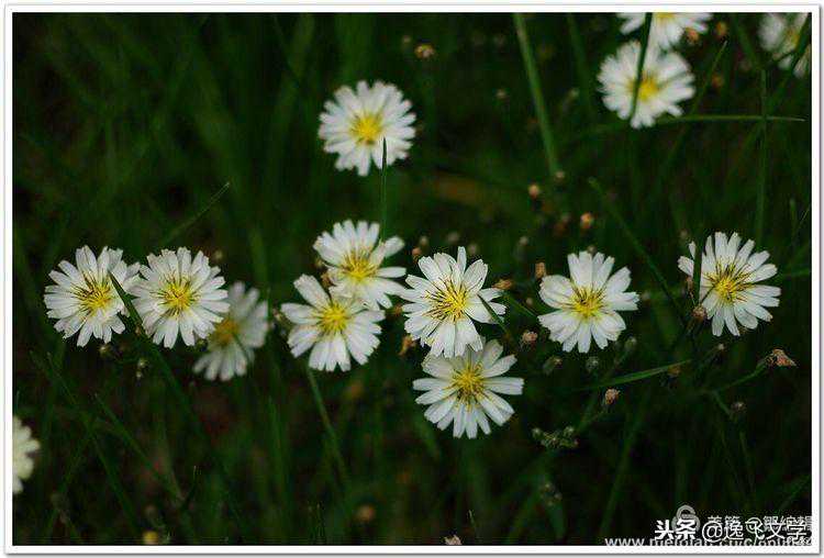 在大山深处长大的我,最喜爱的就是苦菜。苦菜的叶不仅可以吃,花也很好看,那黄艳艳的花朵,热烈的似迎春,淡雅的如秋菊,星星点点,疏密相间。在田野里劳作的姑娘们,常爱摘几朵苦菜花插在头上,那汗津津、红扑扑的脸蛋上,顿时平添了一番风䪨……苦菜花凋谢后,空心花茎的顶端,便结出一个个白色的绒球,绒球中是一个个排列均匀的的褐色果实。这时有风轻轻一吹,绒球被分解成无无数个"伞兵",随便飘落在什么地方,只要脚下有一点点泥土,来年春暖时,那些小小的果实,就又生长出一棵棵绿莹莹的苦菜。