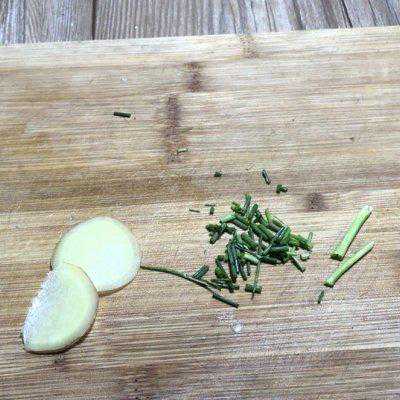 6、取出将汤汁沥入干净的锅中,取出姜葱丢弃,撒上葱花