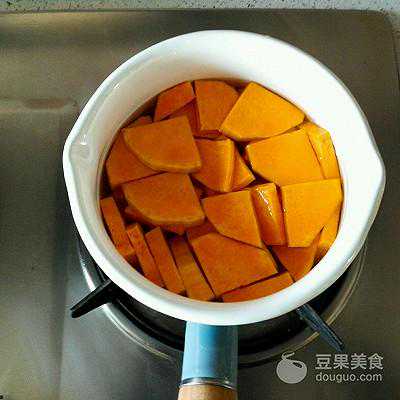2、将南瓜和土豆放入锅里加适量的水煮熟。