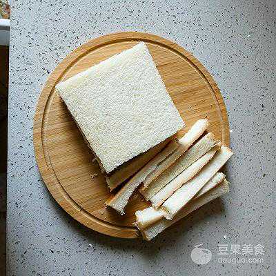 9、锅里倒入适量的油,放入吐司翻炒,让吐司块有些焦脆即可。