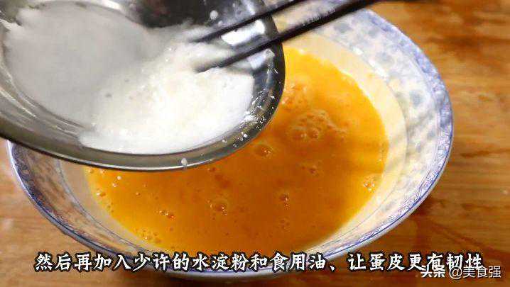 鸡蛋的数量根据所要包的肉馅份量来决定,加入点水淀粉和食用油,