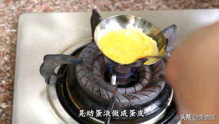 制作蛋饺一定要准备一只大一点的铁汤勺和一块肥肉。