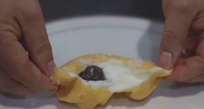 常州名厨姜春涛解释道:“蛋清它放在油锅里炸的时候,能让它松软,能够让豆沙不要外流,如果你用其他的方法,豆沙下到油锅里面,就会僵硬,然后那个沙就会流出来。”