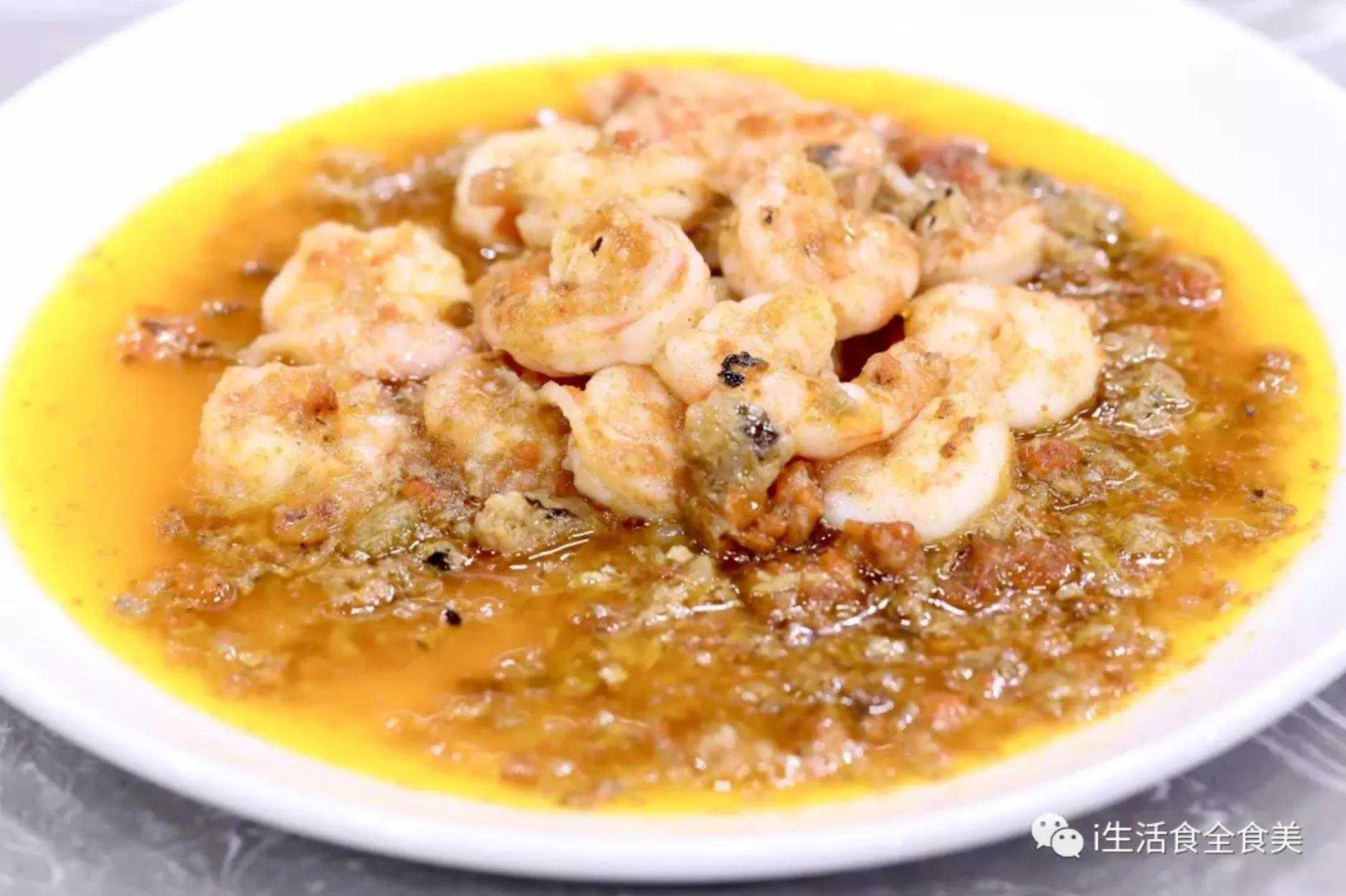 1、海虾去皮去虾线放点地瓜粉拌匀备用。