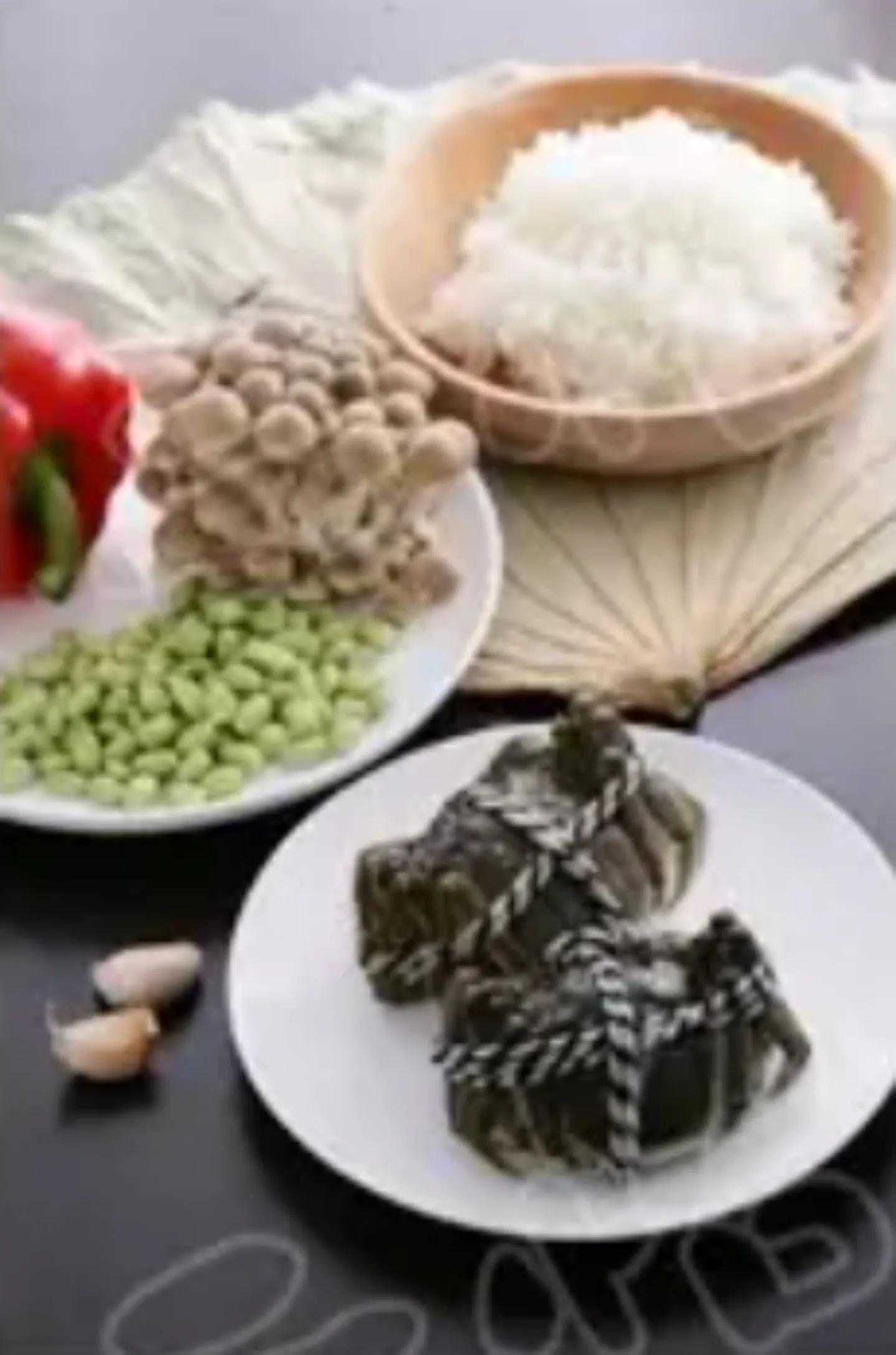 原料:大闸蟹2只(1公1母),蟹味菇1盒,剩米饭1大碗,红椒1个,毛豆1小把,生抽5ml,盐1/4茶匙(1克),大蒜3瓣,荷叶1张(干湿都可以)