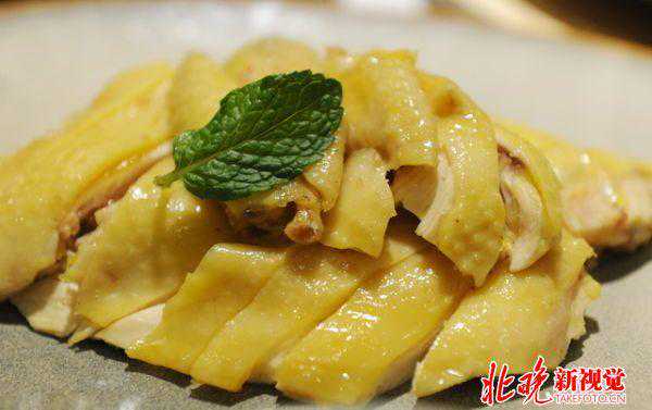 一只好的海南鸡,必须严选120天左右的走地鸡,重量在1.8kg以上,放在特制的桶里蒸熟大概60分钟,然后再把鸡拎出来泡在冷水里,让鸡肉紧实有嚼劲,最后再给每只鸡按摩、切块,配上秘制特调的豉油、蒜蓉、辣椒酱,堪称一绝。