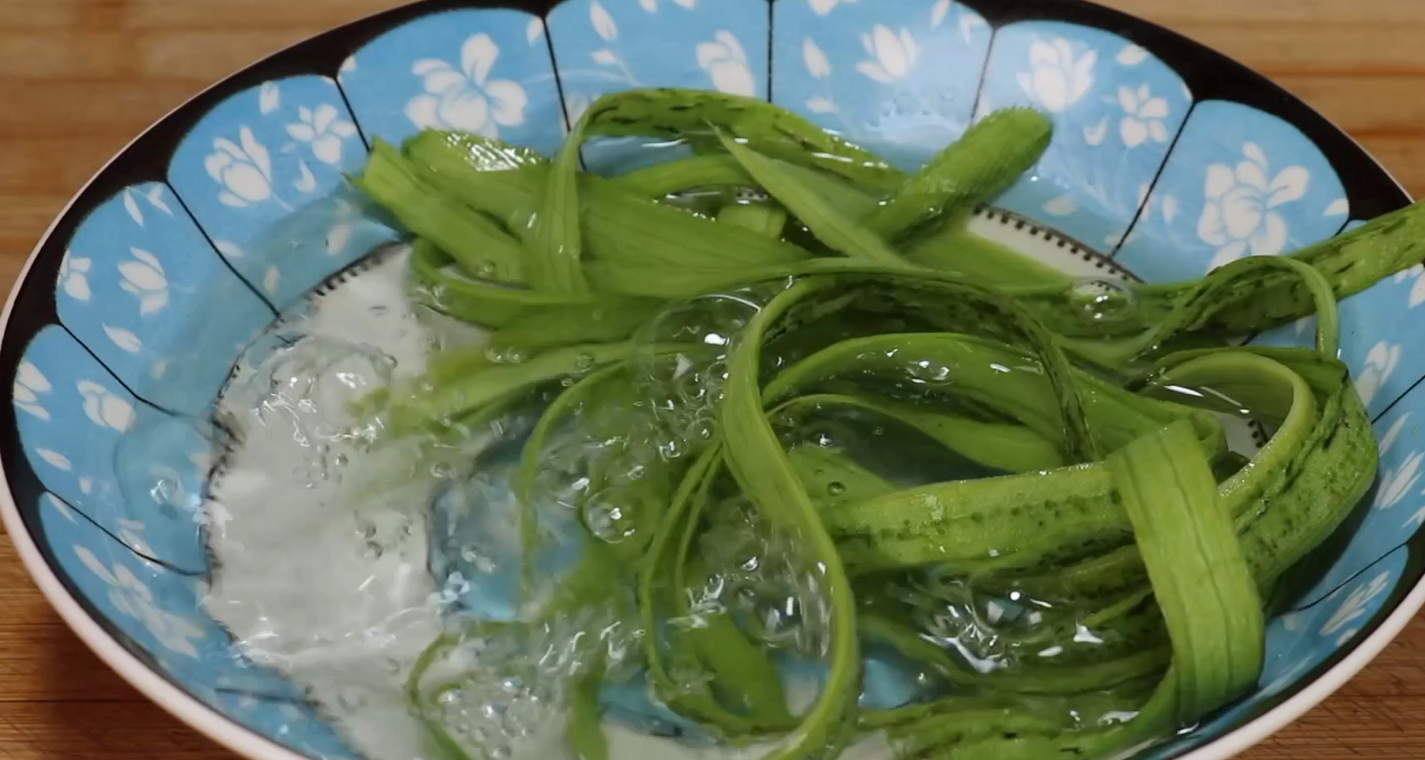 第3个小妙用,滋润补水。咱们将剩余的丝瓜皮水倒入到碗中,然后将它充分晾凉一下。很多朋友会出现皮肤干燥的情况,可以用这个丝瓜皮水拍打我们的皮肤,丝瓜皮中含有瓜氨酸,维生素,C果胶等成分,拍打皮肤后可以有效地去除多余的油脂,使皮肤上的毛孔变得细小滋润,让皮肤更有光泽,可以当作我们平时的爽肤水来使用。