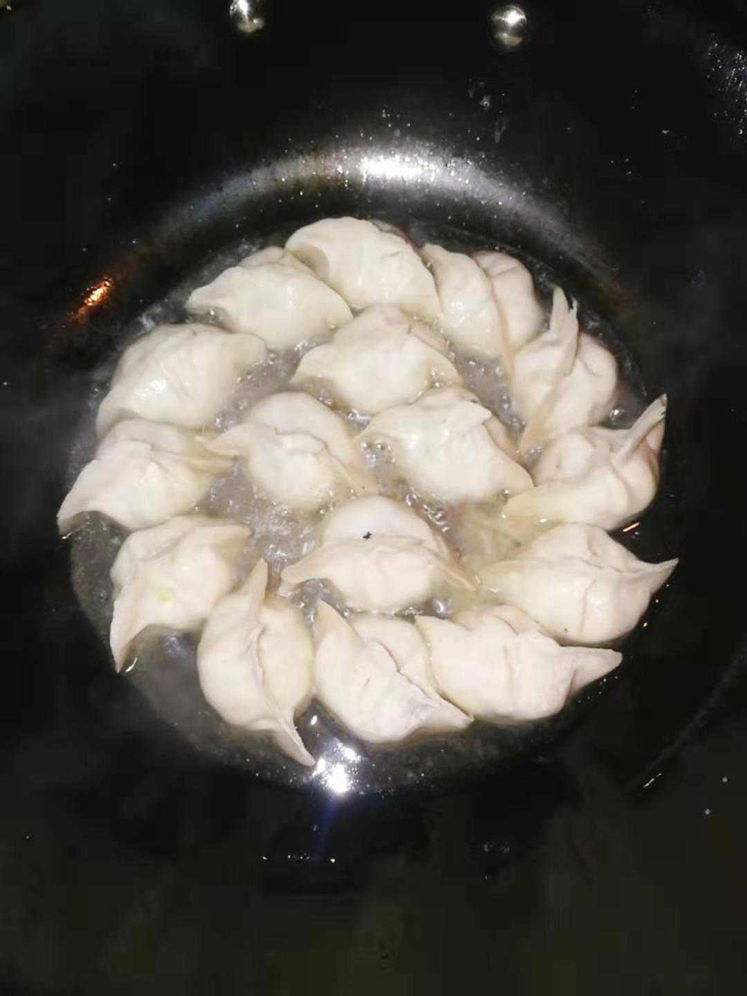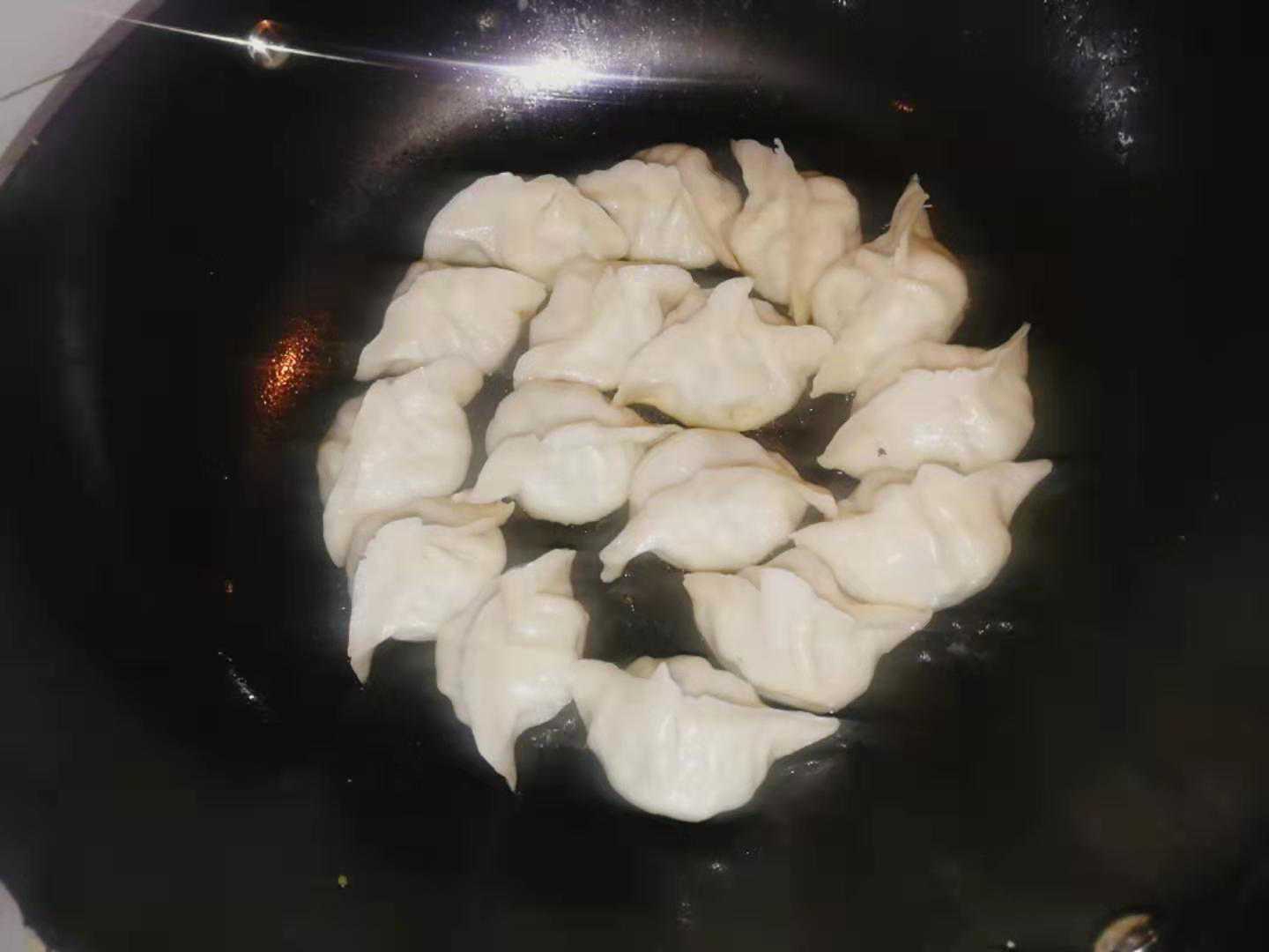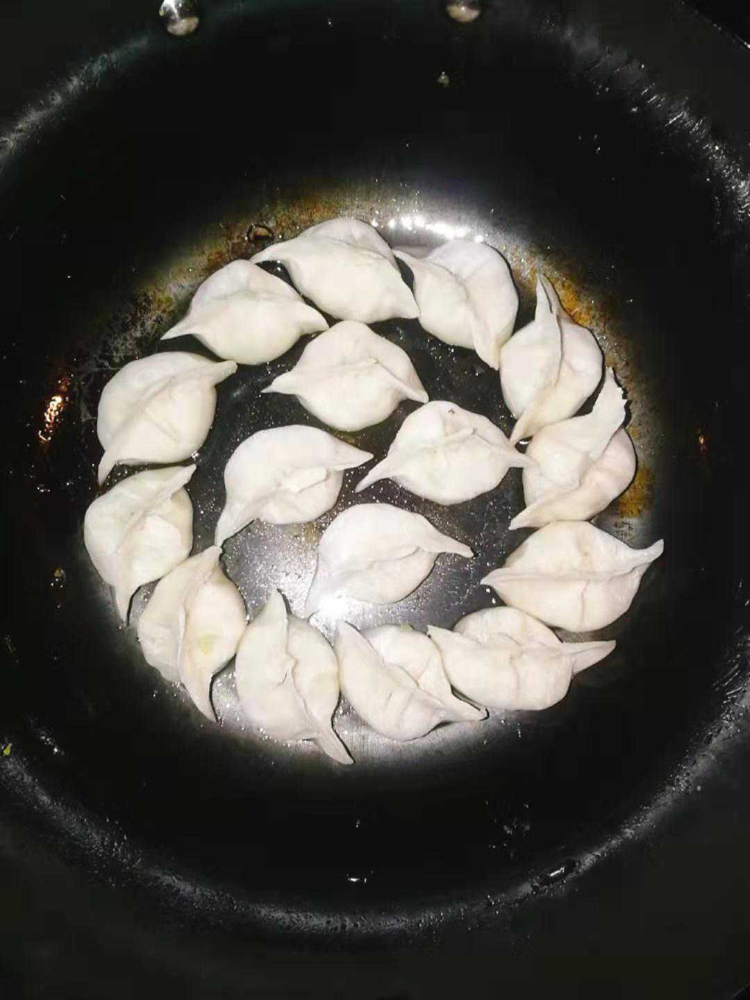 第四步:锅中倒少许油,将饺子放入锅中,小火煎至底面定型出现微焦色