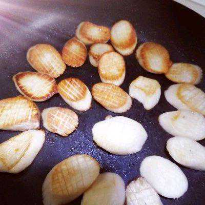 4、煎出杏鲍菇里面的水份,至两面金黄。