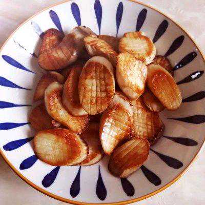 5、煎好的杏鲍菇片盛盘备用。