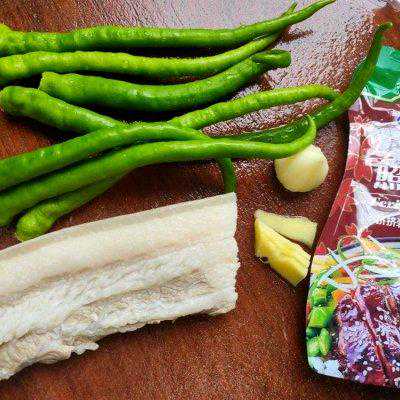 2、然后再放入一些生姜片,干辣椒,花椒,大蒜之类的香料炒出香味以后,再去适量的火锅底料放在锅里边来炒。