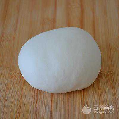 19、面团放面板上,撒少量干面粉,再次揉搓均匀,此时的面团约391克左右。