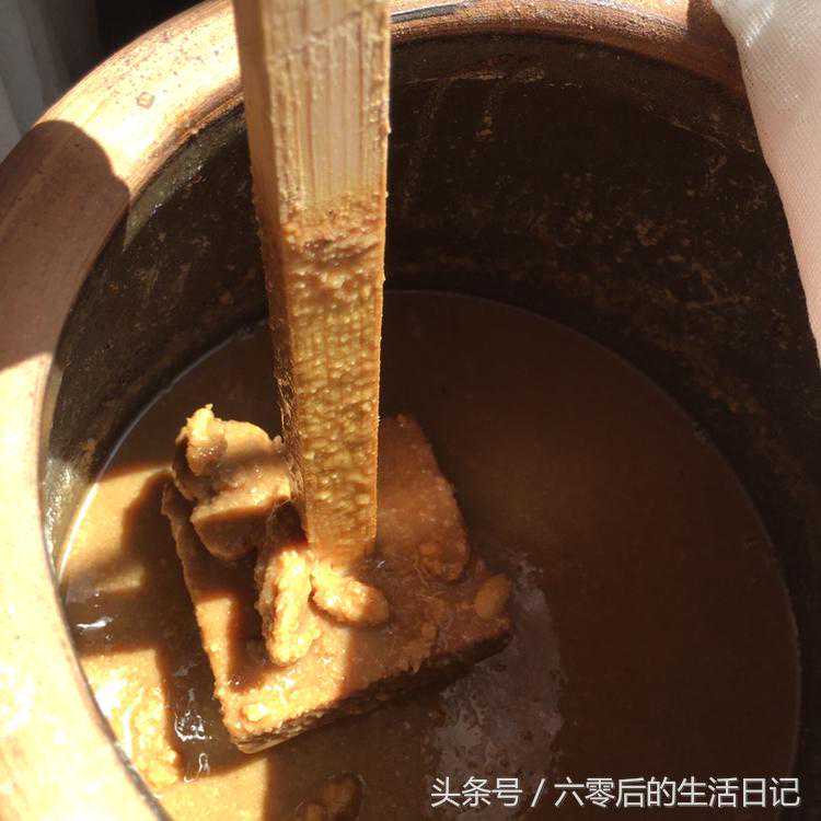农村家家做酱,可每家下的酱味道都不一样,现在想起来,可能与各家酱块发酵的程度、下酱的时间,盐水的比例,甚至下酱的容器有关,所以才有百家酱百家味。但是很奇怪的是每家每年的大酱味道却是统一的,自己家的酱永远都是那个味道。